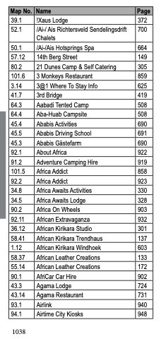 Map No. Name Page