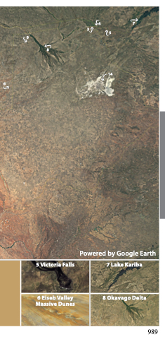 4 7 3 5 9 8 14 6 1 2 Powered by Google Earth 5 Victoria Falls 7 Lake Kariba 6 Eiseb Valley Massive Dunes 8 Okavago Delta 989